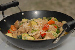 Ein köstliches Wok-Gemüse mit Kokosraspeln und Honig verfeinert.