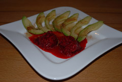 Wusstest du, dass es eine Kakisorte gibt die als Honigapfel bezeichnet wird? In diesem Rezept ist es aber die Kombination aus Apfel und Honig, die diesen Namen trägt.